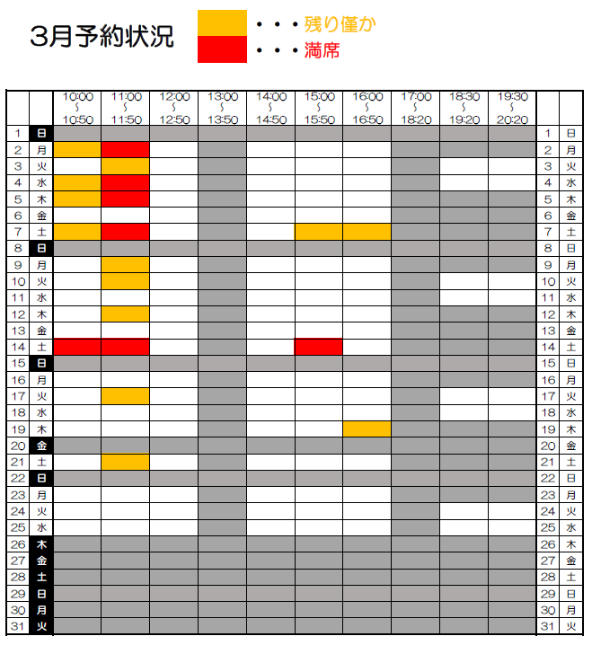 2026年3月 予約状況 & 教室からのお知らせ
