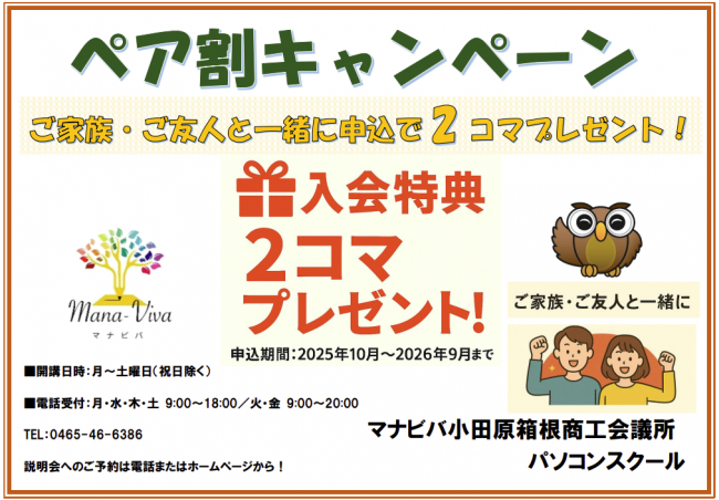 平素は小田原箱根商工会議所パソコンスクールをご利用いただき、誠にありがとうございます。