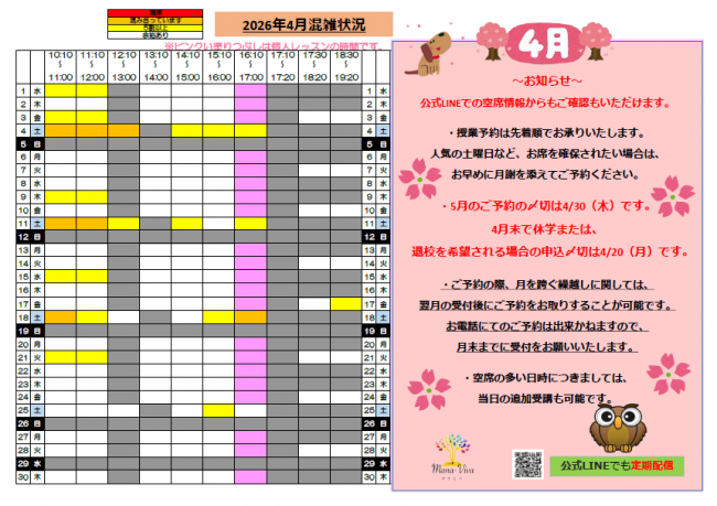 教室の開校状況につきまして (2026年3月24日現在)