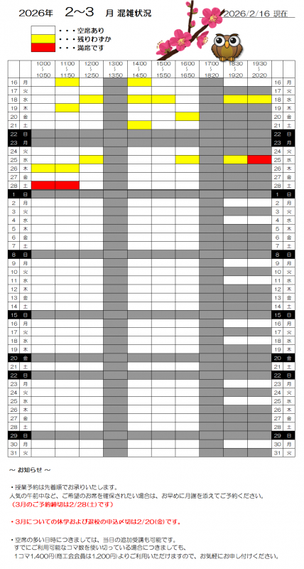 開校状況のお知らせ (2026年2月16日現在)