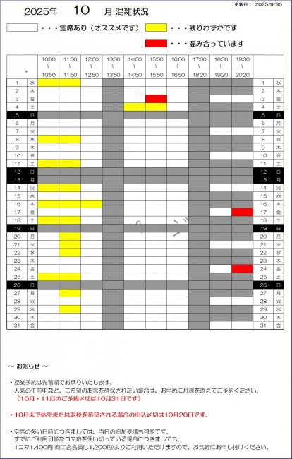 教室の開校状況をお知らせいたします。