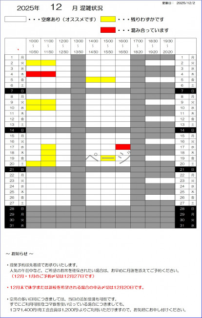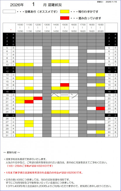 少人数の時間帯に、個人レッスン(在籍者のみ、1コマ¥3,300)を行うことができます。