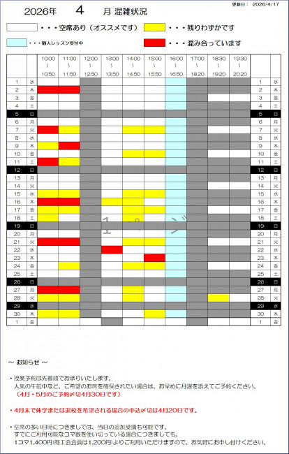 ご希望の方は、教室までお問い合わせください。