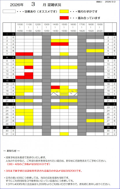 教室の開校状況をお知らせいたします。