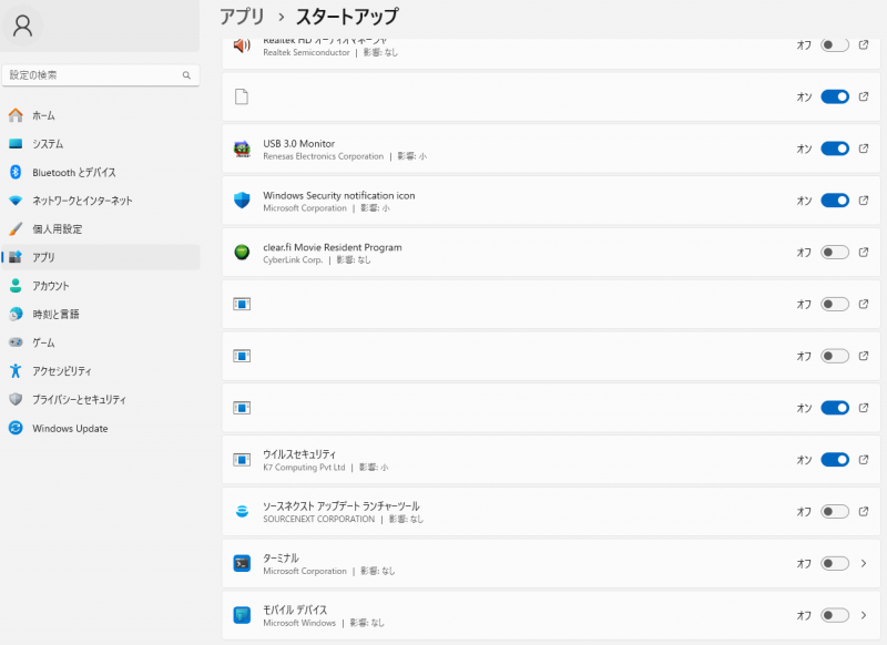 Windows11では使わないアプリが自動で起動している場合があります。