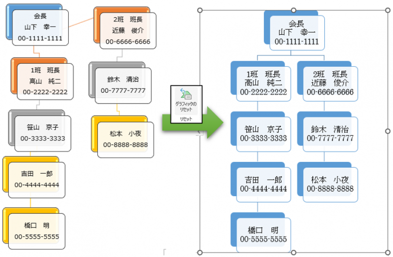 配色やスタイルなどの書式はすべてリセットされる点に注意してください。