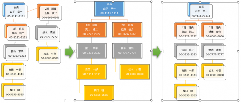 WordやPowerPointでSmartArtを編集している時、手動で配置を調整してしまうと「レイアウトの自動調整」が効かなくなります。