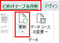 それぞれのシートに変更があった場合は、必ずピボットテーブルの更新を行ってください。
