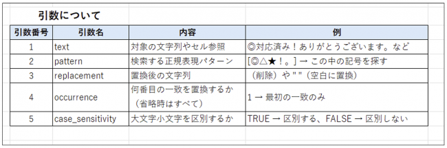 ④ 引数(対象の文字列・検索パターン・置換文字)を順番に入力