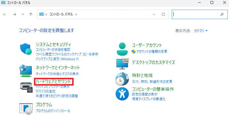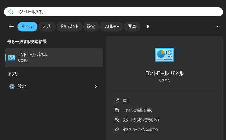 スタートをクリックしてコントロールパネルと検索してコントロールパネルを開きます。