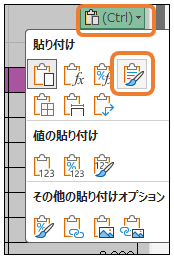 貼り付け時に書式設定に関する指定を行うことで、前のファイルの書式を正確に引き継げます。