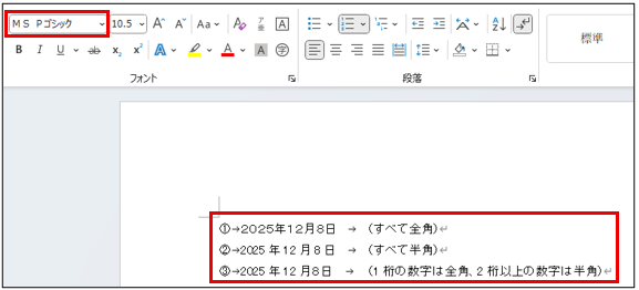 例えば、この文書では②(数字はすべて半角)にすると決めたら最後まで②を貫くようにしましょう。
