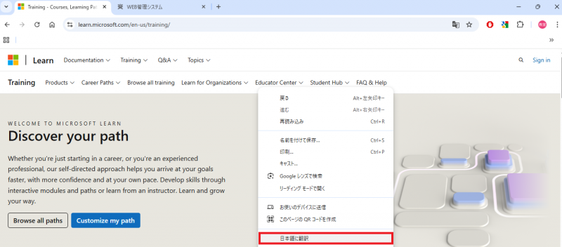 このように外国語の文章が出てきたらブラウザ上で右クリックを行うと日本語に翻訳と出てくるので