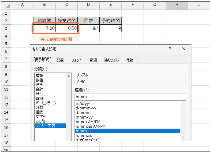 7:00や0:50は数式の中で時刻として認識されないため、エラーになってしまいます。