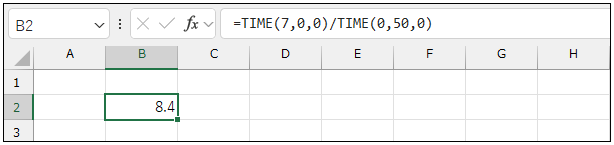 今回の例だと、「=TIME(7,0,0)/TIME(0,50,0)」という入力になります。