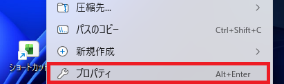 1.対象アプリケーションのショートカットアイコンを右クリックし「プロパティ」を選択。