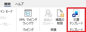 ① 【開発】タブ→【テンプレート】グループの【文書テンプレート】を選択します