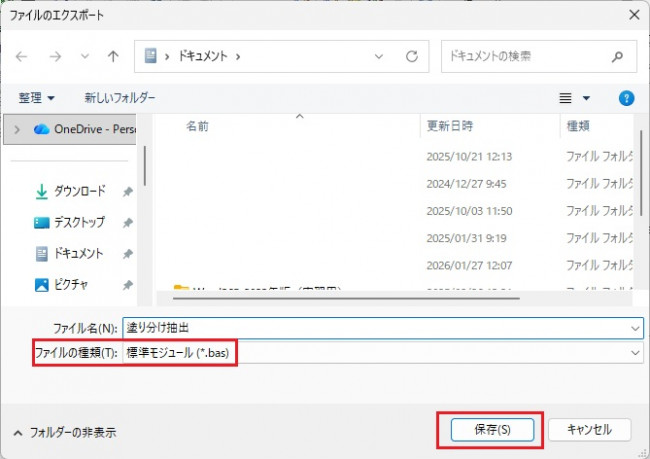 ⑤ 【ファイルのエクスポート】ダイアログボックスが表示されますので、ファイル名を入力し保存します