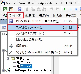 別ファイルで作成したマクロ(モジュール)を引き続き使用するためにブック間でやりとりすることができます。