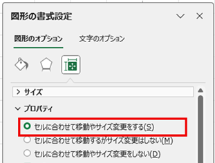 ●「セルに合わせて移動やサイズ変更をする」(既定ではこの設定になっています。)