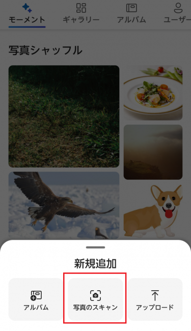さらに【新規追加】メニューの中から【写真のスキャン】をタップし、対象の書類を撮影します。