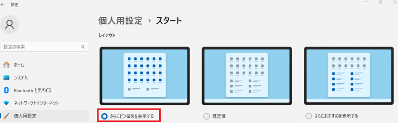 レイアウト欄にあるさらにピン止めを表示するを選択してください。
