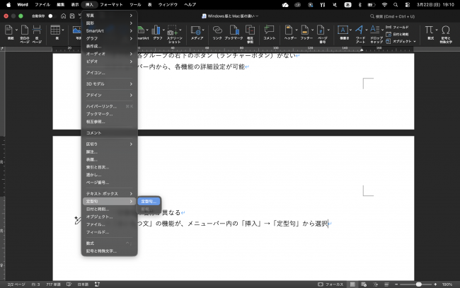 しかし、Mac版のofficeソフトと、Windows版のofficeソフトでは、若干の違いがありますので、今回はWordでの違いをご紹介します。