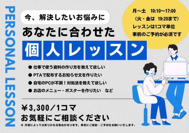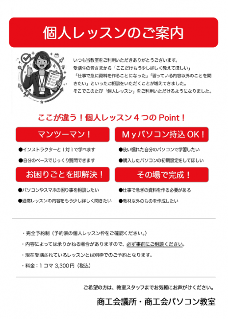 パソコン教室 個人レッスンのご案内