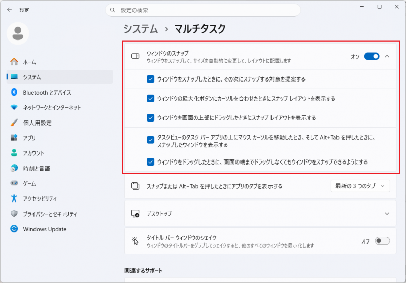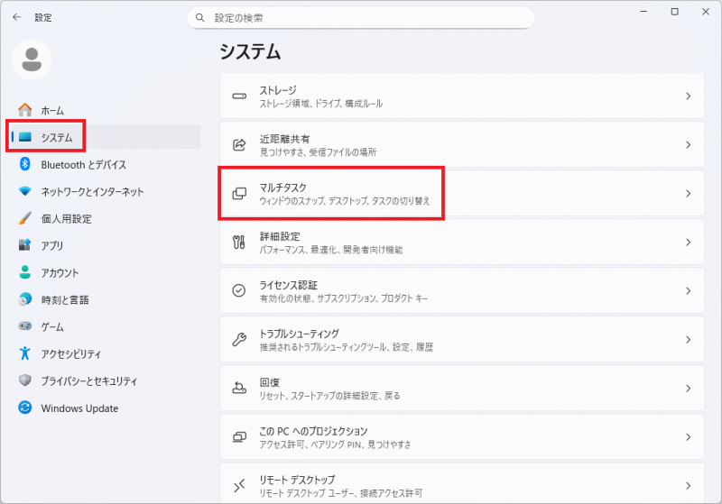 設定 → システム → マルチタスク