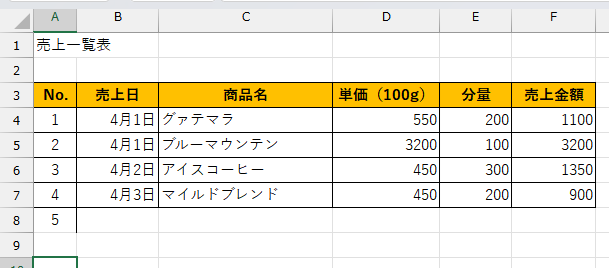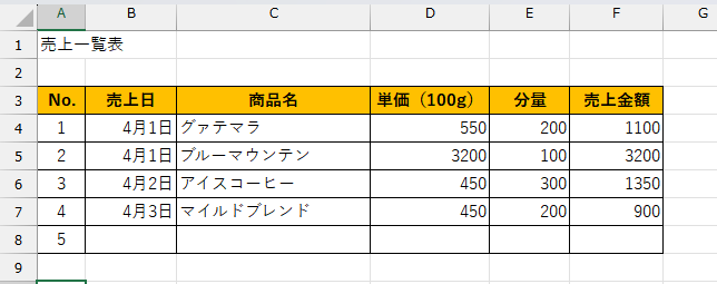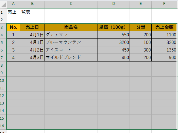 Excelですでに完成している表にデータを追加する事は多々あります。例えば下の表にNoを追加で入力すると、設定によってはセル右側に縦の罫線だけが入るか、ただ単に数値だけが入ります。そのため、入力した行に再度罫線を引く事となります。1回1回は大した手間ではなくても、積み重なれば大きな時間のロスになります。そこで今回は、文字を入力した瞬間に自動で罫線が現れる設定方法をご紹介します。