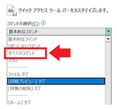 【基本のコマンド】から【すべてのコマンド】へ変更します。