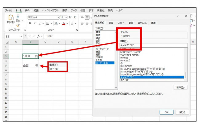 Excelで金額のあとに「円」をつけたり、名前のあとに「様」をつけたりすると、